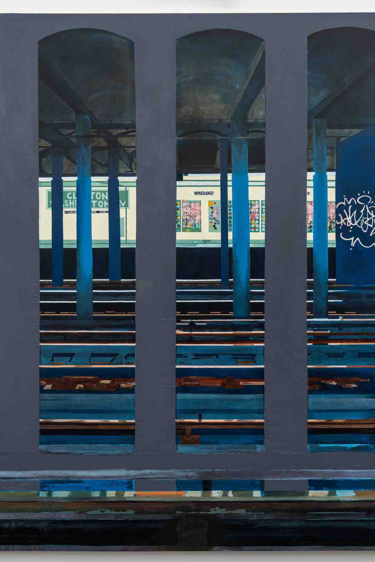 Artists KB Jones (Chozick) and Heather Guertin (JDJ) will each present new paintings grounded in observation. Jones’ work places viewers on a subway platform where plein-air intimacy meets stylized graphic mark-making; her interest lies in systems of hierarchy and how perspective shapes belonging in public space. Paintings by Heather Guertin begin with collaged fragments from images found in discarded library books, which she translates into graphite drawings and, ultimately, dense, allover abstractions. Forms press edge to edge, as color, pattern, and texture interlock in a continuous field. Bold contrasts and layered markmaking create a sense of movement and tension, transforming disparate sources into vivid, tightly woven compositions.