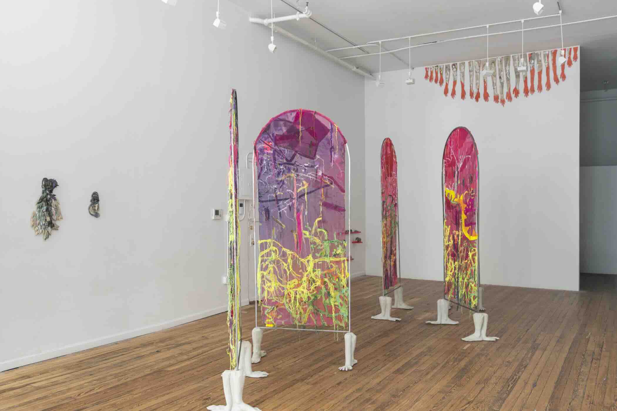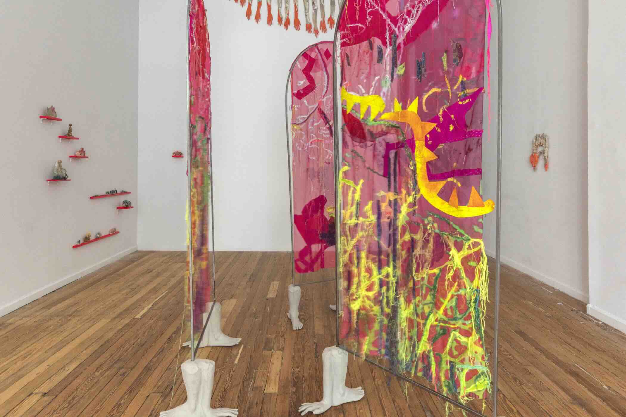 Jimenez’s practice illuminates the intersection of bodies and spaces, of materials and migrations, of ancestral pasts and speculative futures. From the fluidity of textile to the permanence of fired clay Jimenez maintains the poetic, immersive sensibility of her previous installations.